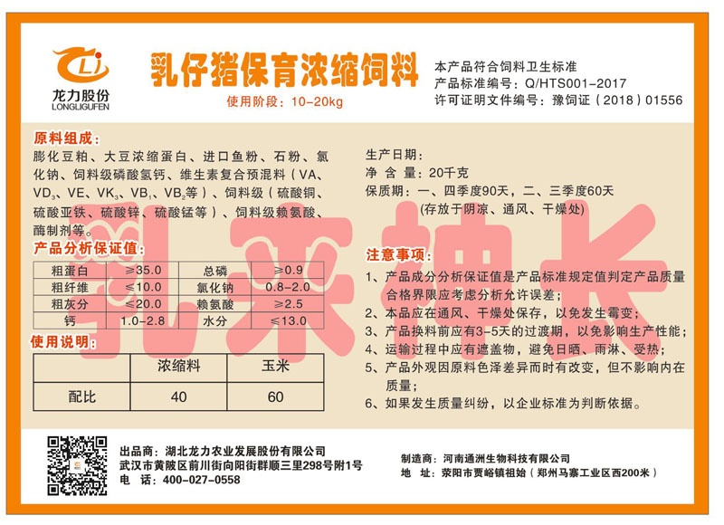 湖北龍力農業發展股份有限公司坐落于武漢市黃陂區前川街向陽街群順三里298號附1號。公司成立于2014年6月,公司自成立以來把“創全球最大養豬綜合服務”為企業愿景。致力于打造教保料品牌”作為公司發展的明確目標。公司一直致力于豬營養的研究和開發,積極與國內外高校和科研機構合作,推廣養豬技術、動物營養新概念,向世界農牧企業學習與合作。公司采用國內先進的生產工藝,選擇高精度電子配料秤,高均勻度、無殘留混合機等先進設備....